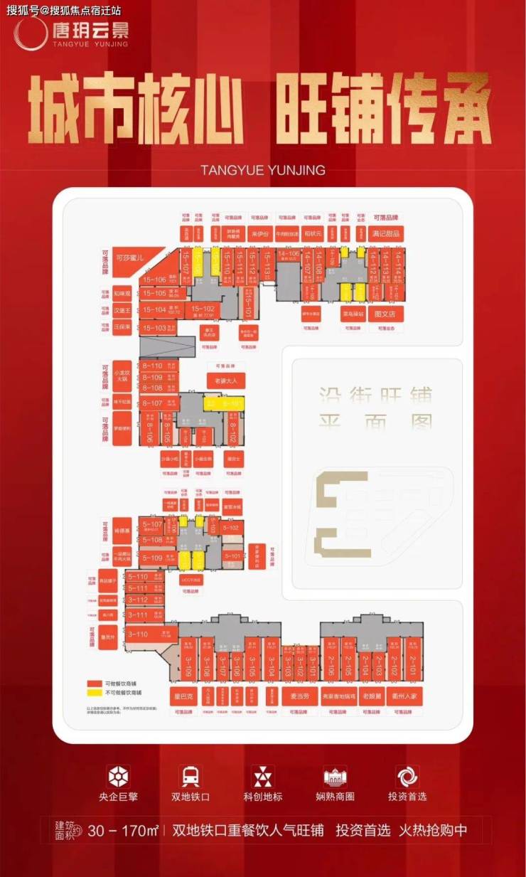 商铺:单间建筑面积从9平方米至100平方米不等,位于地铁口,人气旺盛,且每户均可经营餐饮业务。