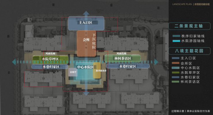 项目规划以“十字水院”为中心,引钱塘之水入园,蜿蜒串联入户门庭、风雨连廊、下沉水院、会所、漂浮健身房、阳光草坪等多处场景和节点,从外到内、一步一景、层层递进、可游可憩可感,打造融合自然与艺术的都市生活秘境,构建高配奢居体验。