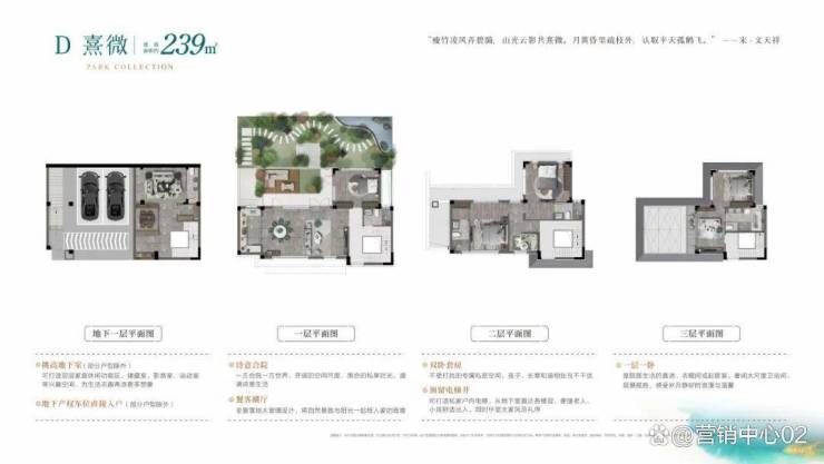 • 239㎡宽境六院:三面瞰湖视野,LDKB一体化空间布局,下沉式庭院可改造星空茶室或家庭影院;