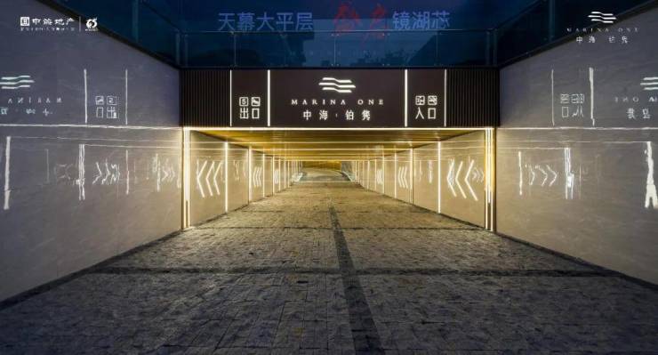 两侧以瓷砖铺面,让整个入口显得颇有质感。瓷砖上以LED灯用以导视,醒目清晰。