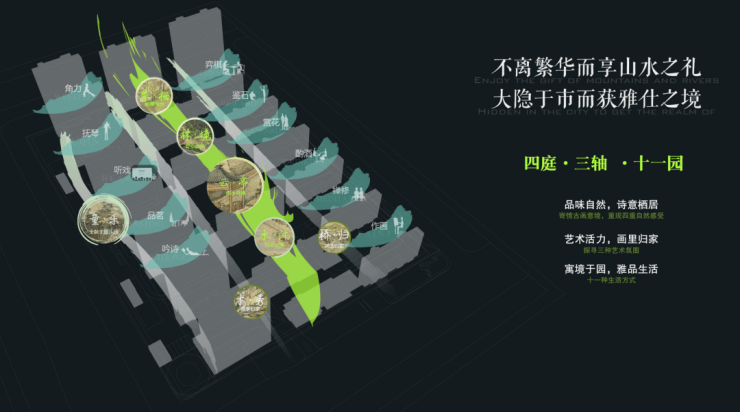 融入江南文化雅韵的“新江南十一园”,更配合超大楼间距,设置流水造景、度假式卡座、林下吧台;于室外会客厅静坐闲谈,共同探讨生活乐趣。