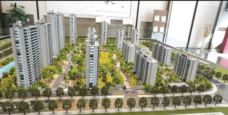 主入口景观水系喷泉,归家大道的两侧穿插和布置了四季不同的植物,如樱花、榉树、银杏等等,让回家的路一步一景、四季可赏;楼栋间距非常开阔,其中最大的间距达到了约55m左右,能让业主享受更完整的景观和日照建筑采用现代简约风格,以冷色系为基调,简洁高雅,通过玻璃的质感和建筑竖向线条的和谐搭配,使整体建筑庄重、大气