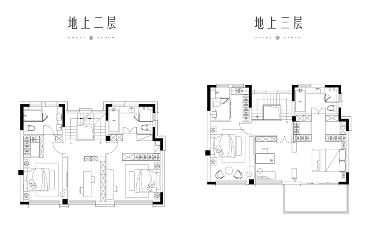 二层三开间均为南向设计, 2个卧室都带独立卫生间+衣帽间,让每个家庭成员都能平权享受高质量生活; 南向开放式书房,可随家庭成员的增加、年龄变化随时改变用途,自由度满分。