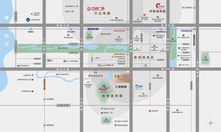 天玺240,雄踞鄞州中心区门户——南部商务区。是宁波战略核心及重点打造之地,亦是鄞州区行政和商务中心区域。位处高端商务经济集聚区,汇聚商业、医疗教育、商贸办公、娱乐等丰盈资源配套。地理位置得天独厚,造就大都会特有的璀璨人居。