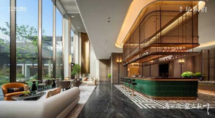 高定会所配备泳池、健身会所、下沉式会客庭院等,匹配城市高净值人群的社交需求。