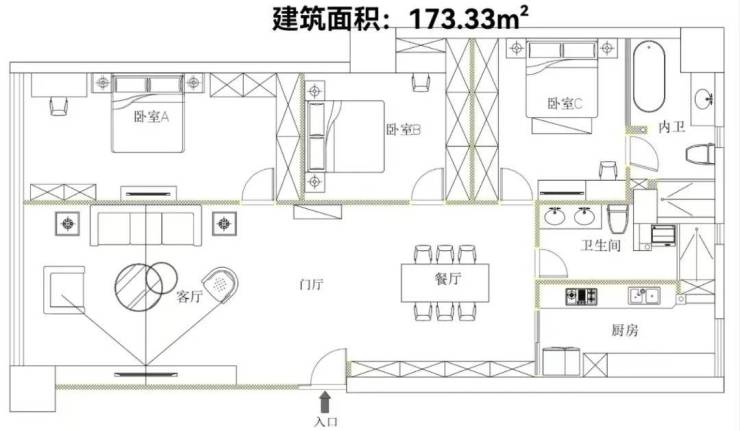 【面积】:173.33m²