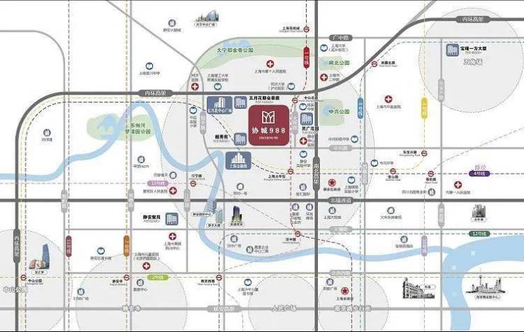 上海市中医院1.3公里(三甲),上海市第十人民医院1.9公里,上海市同济医院2.9公里(三甲),上海市第一人民医院2.9公里(三甲)等医疗配套(数据来源高德地图)