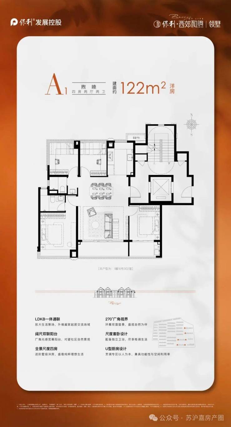 建面约122㎡4房2厅2卫墅境洋房,总价约500W级享3+1飞机户型!