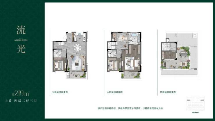 5栋下叠262㎡,上叠边户319㎡,中户328㎡