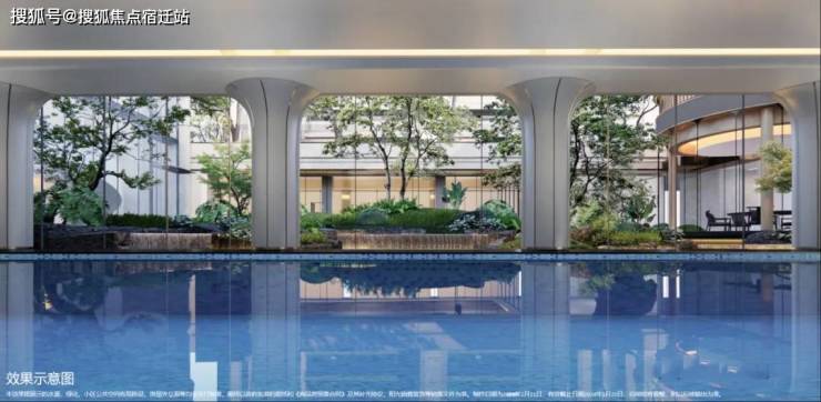 项目标配下沉式庭院会所和恒温泳池,满足业主们的会客、健身、娱乐需求,同时利用建筑内部的架空区域,以全龄社区为出发点,打造容纳多元生活的社区中心。