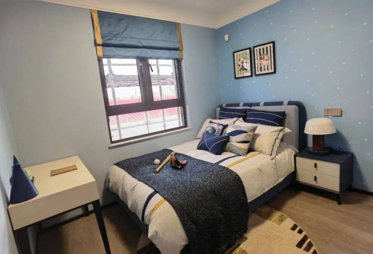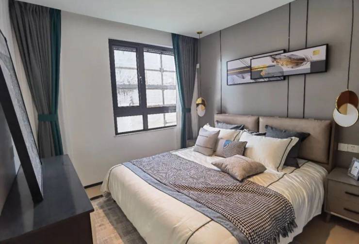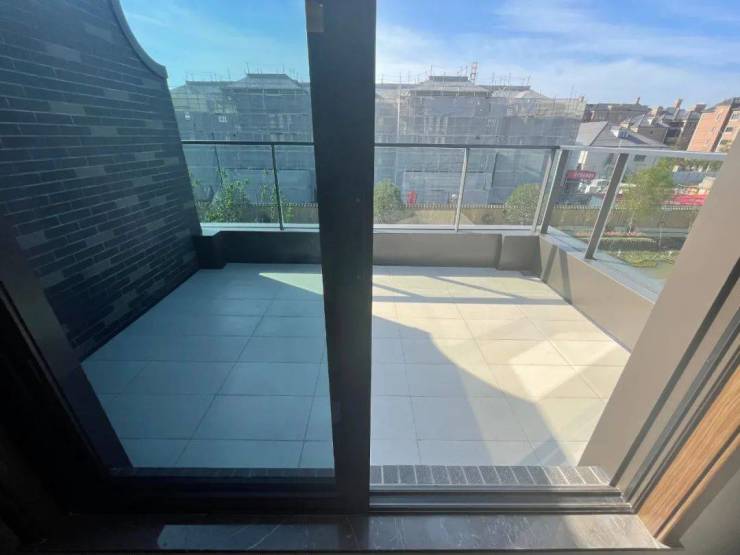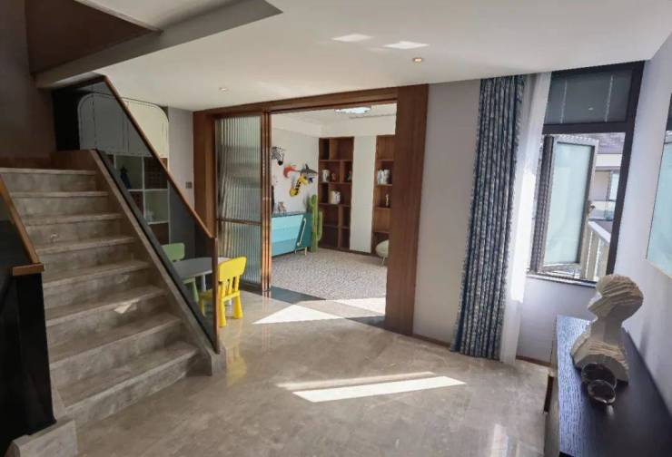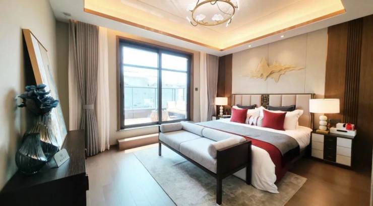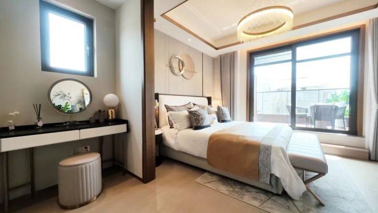 该户型二楼南向卧室有多面采光,这在上海极为少见。超长露台连接起两个卧室,如果家里有两个孩子,各自一个卧室,共通露台供其玩耍,别提有多开心。