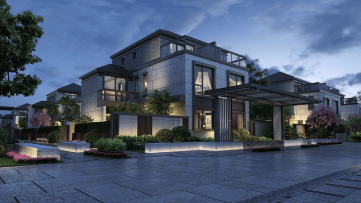 【上实·和风院】建筑外观是新中式格调,以黑色面瓦为黛顶,整体线条简洁明快。