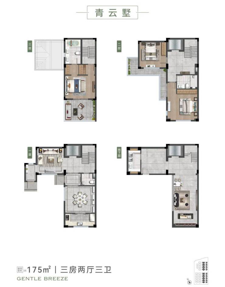 合院约175㎡户型详解:合院的优势在于“L型”的户型排布。