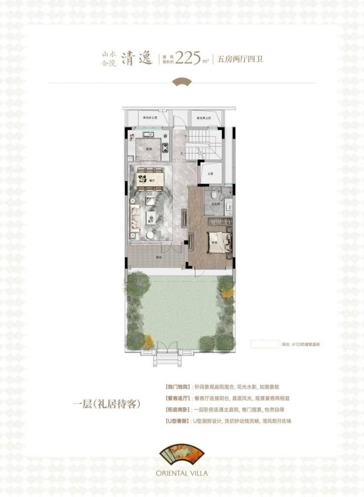 溪畔雲庐山水合院主力户型在225-360㎡,放大空间面宽,户户独享庭院、赠送专属露台,无论是一楼、二楼或是三楼,都有微风吹拂的廊下空间,都可以走向花园或者俯瞰花园。地下双层总高约6m,南北双采光井设计,阔绰有序地营造出影音室、书房、收藏室等兴趣空间。