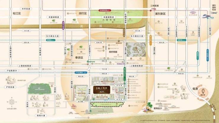 立踞奉贤海湾旅游区,坐享6大城市森林,万余亩海湾国家森林公园、25公里绵延海岸线,构建起磅礴富氧生态圈,尽享诗意生活场。
