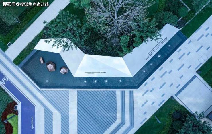 位于中心的“钻石”景墙彰显沉稳大气,其跃然于水池之上,多角度的切面光感深浅不一,景墙在阳光与水面共同作用下,展现出如钻石般的耀眼光芒。