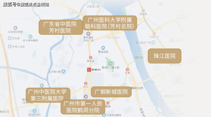 三甲医院:项目 4 公里范围内有 5 所三甲医院,包括广东省中医院芳村医院、广州中医药大学第三附属医院、广州市第一人民医院鹤洞分院、广州市脑科医院等,此外,崇文二路侧的广钢医院正在升级改造为拥有 1200 张床位的三甲综合医院,为居民的健康提供有力保障