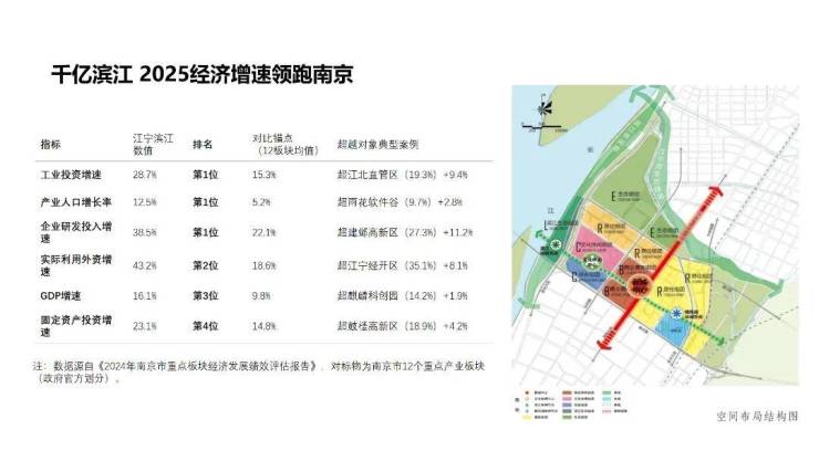 江宁滨江开发区位列南京市级开发区综合排名前三,高新技术企业数量年增30%,创新动能强劲。