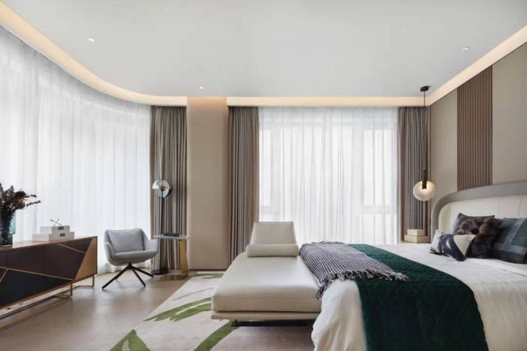 主卧设置了男女主人的衣帽间,整个户型的收纳空间可以达到13%以上;自然流畅的功能分界,尽显豪门气度,和当代奢华平层的品质追求。