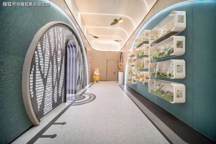中央车站的一侧是业主会所——“庐外客厅”。绿城把物业前台放在了这里,咨询、报修、生活缴费、家政等服务集成于此。会所内的中轴泳池,一片湛蓝,最抚人心。泳池周围,健身房、淋浴更衣、储存柜、户外休闲等一应俱全。今后每年夏天,小业主将在这里学习游泳。