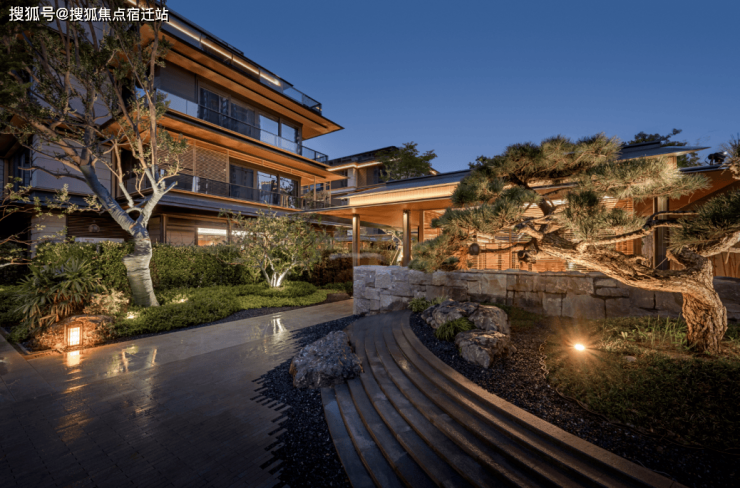 从步行归家动线进入小区,需要走上约4米高的阶梯才能进入归家大堂,阶梯两边是潺潺流水。流淌的不仅是雅致与柔和,更有财气与吉祥。