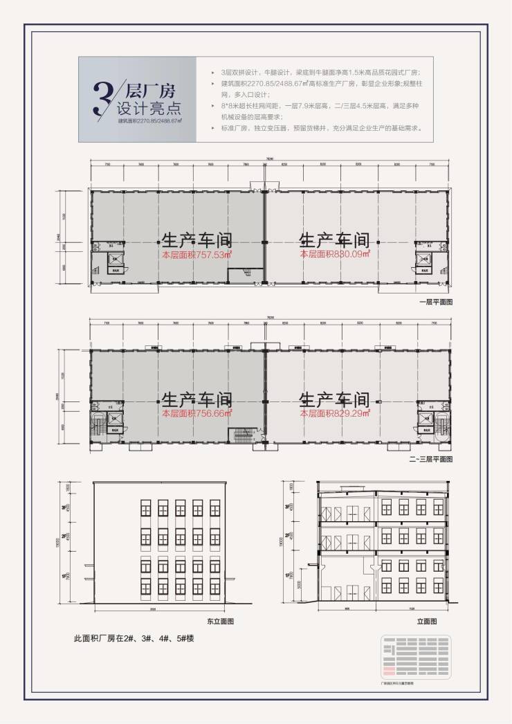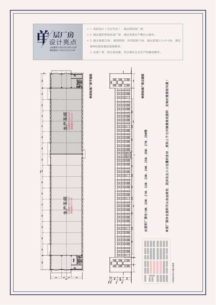 消防等级:丁戊类,预留丙类条件