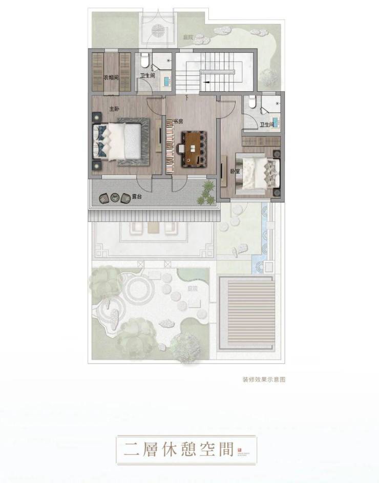 全系至少3开间朝南,户户带大横厅,最小的约129㎡也不例外。每户都带约60-300㎡大花园,起步面积就是城中庭院的天花板。
