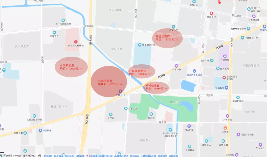 在配套上,此地块配套多集中在地块北侧,如有吾悦广场、宿迁世贸广场、儿童医院、南洋学校、黄海路初中(在建)等。此外,距酒都公园、九鼎公园、宿城新区文体中心也仅仅5分钟路程。周边配套,集教育、公园、商业、品质住宅区为一体的优质地块。就这配套,对比五月的一次激烈土拍,性价并确实高很多。