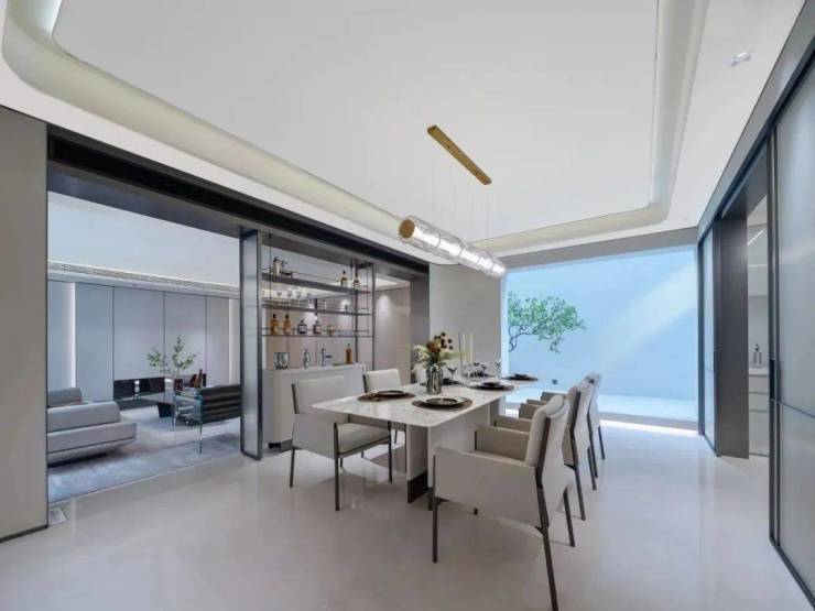 地下空间配有超大采光井,完全摆脱了一般地下室阴暗不通风的困扰。地下层高达到了约5.8米,这也让地下空间变得更灵活性:影音室、茶室、棋牌房,或是金库、酒窖、雪茄房,业主丰富的生活爱好和空间需求,都可以轻松容纳。