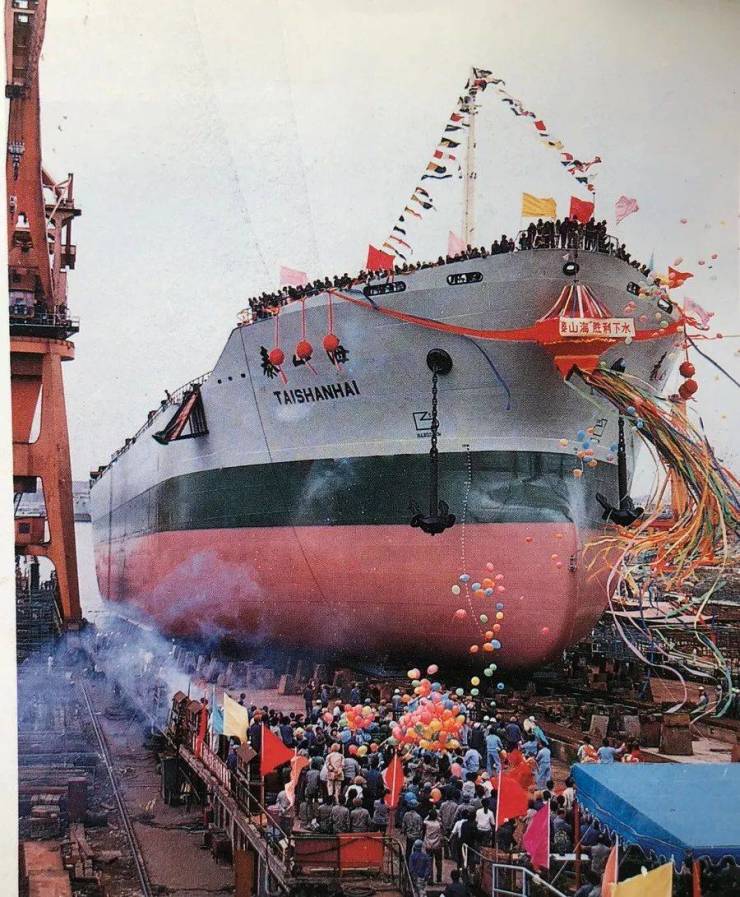 20世纪90年代,杨浦区中华造船厂新船下水仪式