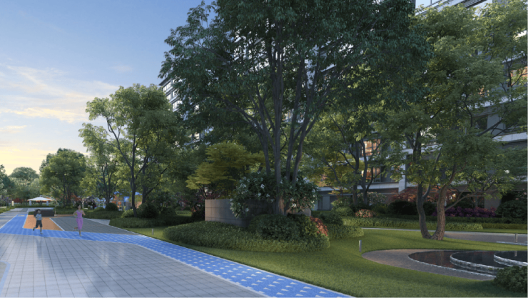 小区中间约4000方的花园绿化中心庭院,超高绿化率,小区中心位置打造了具有多层次感的中心水系和书院会客厅,从归家礼仪到日常赏景,小区种植多种名贵树种,三月樱花社区,四季流转中,体验花园洋房生活。