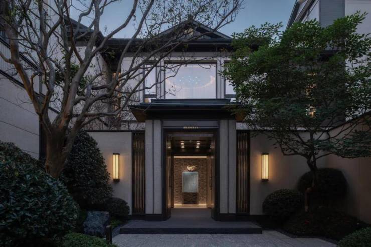 以瑰丽多姿的石材为主背景墙的大尺度宴会厅,营造出群山环抱、峰峦叠嶂的视觉体验,瀑布垂直泻下,水流撞击着岩石上的棱角,飞溅起朵朵水花,整个瀑布好似一面珍珠织成的画屏。主卧室仰望着展现豪宅气势的斜面屋顶与“艺术三馆”相呼应,搭配高雅质感的皮革褶皱肌理,犹如树枝摇曳,演奏出舒眠乐曲,卸下生活中的疲惫,舒适中透露着贵族气息。家主私密而奢华的领域,亦是彰显个人魅力的空间。