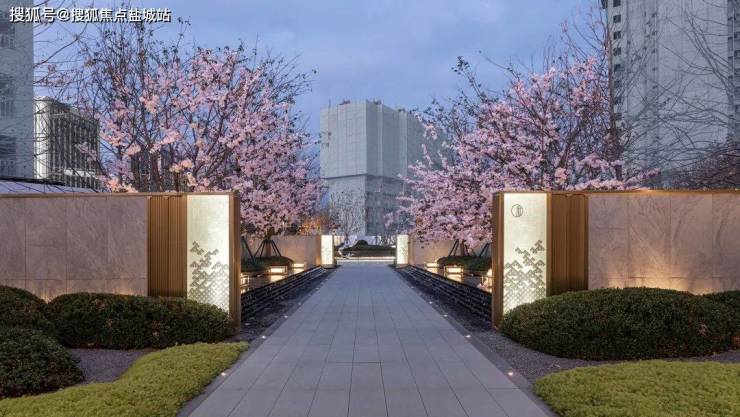 对景景墙以透光石为打底,嵌入海水江崖纹饰样,历经近百日定制,精雕细琢,尽显和颂项目专属的尊贵性与归属感。