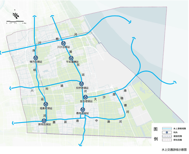由市规划资源局会同浦东新区政府、东方枢纽集团和机场集团牵头组织33家技术团队多专业集成联创,《东方枢纽及周边地区专项规划(2025-2035年)》于2025年3月在上海市规划和自然资源局官网上线,该规划用137页篇幅洋洋洒洒地介绍了东方枢纽及周边地区现状概况、发展目标、城市设计等内容。东方枢纽及周边地区地处浦东中部,西邻张江科学城,南接临港新片区,涵盖祝桥、川沙、惠南、宣桥、老港等多镇,历史文化底蕴深厚,生态比较优势显著,产业经济门类齐备。 在该规划中,横沔、新场、惠南、川沙或将设置码头,构建特色化的水上交通。