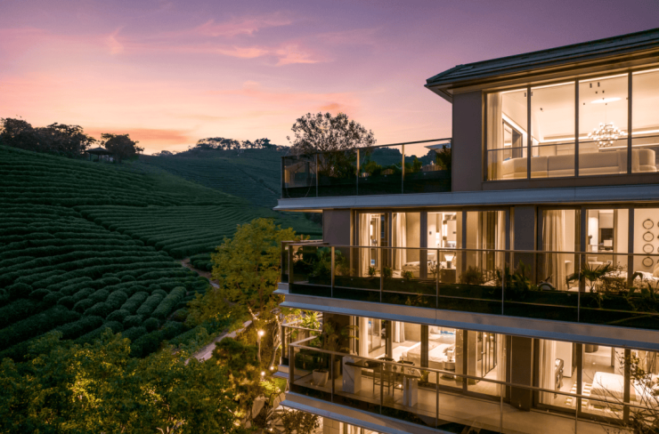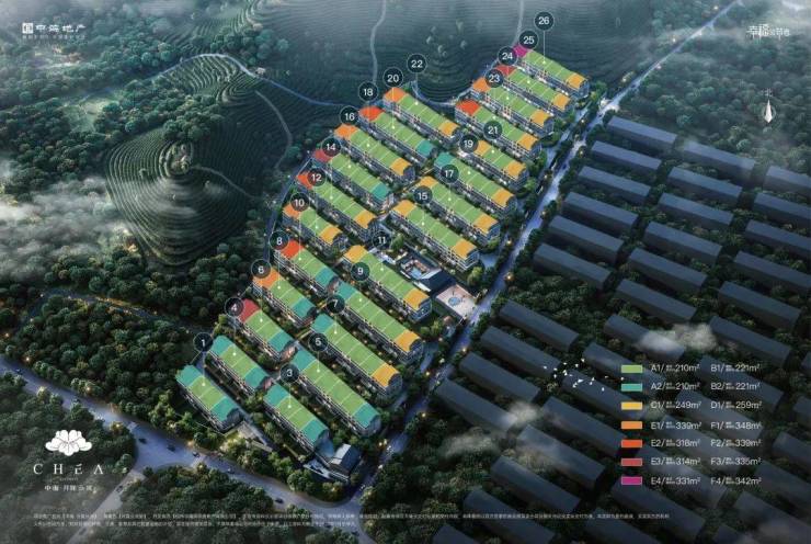中海月陇云岚共规划了24幢4F叠墅,地块依托山体呈现出坡地形制。建筑风格是黑屋顶的中式叠墅,入口大门内部有集中的树阵园林景观。项目共规划24幢,256户,建筑面积约210-352㎡茶陇山院,精装限价45500元/㎡,装修标准4500元/㎡。