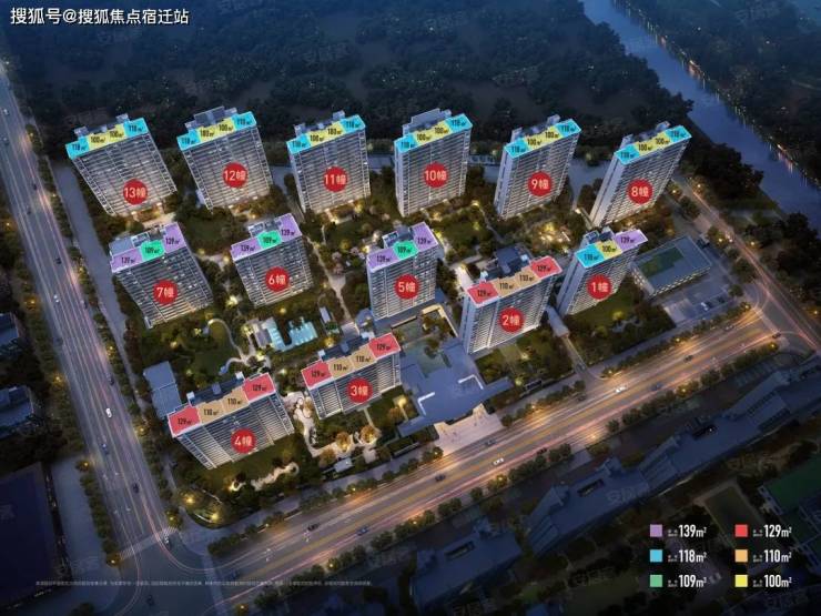项目建筑面积13.57万平米,占地面积4.15万平米,容积率为2.40,规划821套房源,13幢住宅,分别为1幢13F、1幢16F、2幢17F、9幢18F。