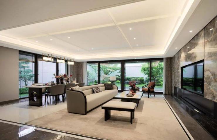 新中式,院墅,中式的坡屋顶与通透的大玻璃立面结合,将东方的传统意境与国际化的审美融合,像极了当前的杭州也像极了此刻的龙坞,既老又新,既传统又现代,既有西子湖的温婉又有钱塘江的磅礴,碰撞出一种全新的审美与生活方式。溪映听庐隆起的屋脊,仿佛群山的绵延,大地与人文交织出全新的风景。