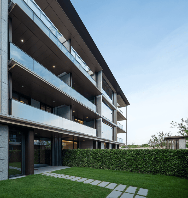 而庐系叠墅则遵循“现代形、东方意”内涵,延续咏溪云庐经典设计语言,设计更大窗墙比、利落水平飞檐等,在立面、空间、尺度的全维精进中,展呈轻盈当代的作品表达。