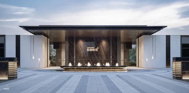 入户大堂是一个楼盘的门面,彰显了一个楼盘的气质。 在湖映里,大气的酒店式入户大堂, 顶部大挑檐,岩板背景搭配金色金属格栅 ,两侧的休息区连接着风雨连廊,每一处细节都彰显着尊贵气质,无论是出门时的憧憬,还是归家时的喜悦,都能让生活充满仪式感。