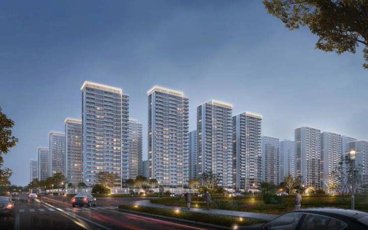 8栋高层建筑呈大围合布局,每一栋都在四面大面积铝板建筑立面、外墙三玻两腔LOW-E玻璃的基础上,注入崭新设计灵感,顶部暖色“皇冠”格栅,打上了湖畔高颜值标签。