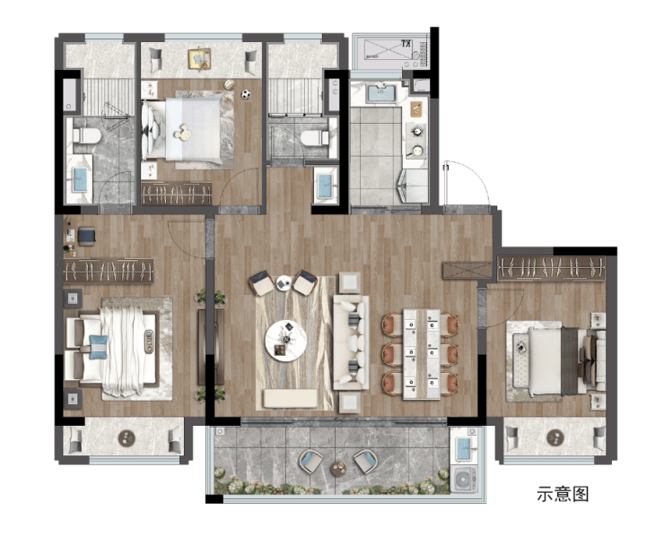 中国铁建·花语天辰的不同户型满足二孩、三孩、三代等不同阶段家庭需求。星级套房式主卧,奢配南向宽奢飘窗、卫生间、卫浴、步入式衣帽间、化妆台等研磨每一寸空间,结合私密与舒适,兼顾功能性与体验感。全能四房空间百变多元化,可以根据居者需求将另一间改造成太太的健身房、孩子的儿童乐园、先生的办公室,老人的茶艺室等。苏州难得的科学空间布局,让家人生活更加自由舒展。