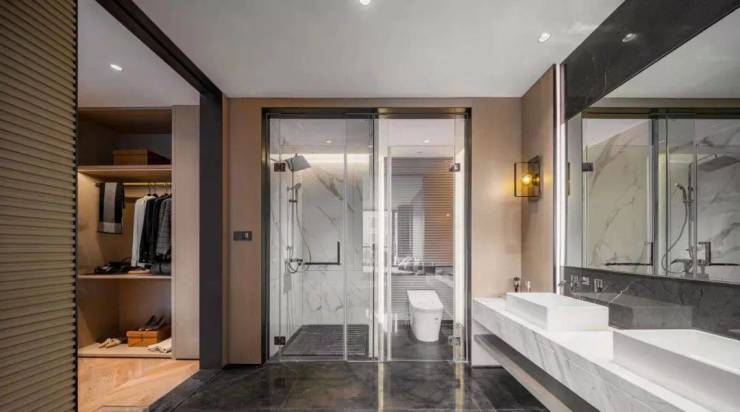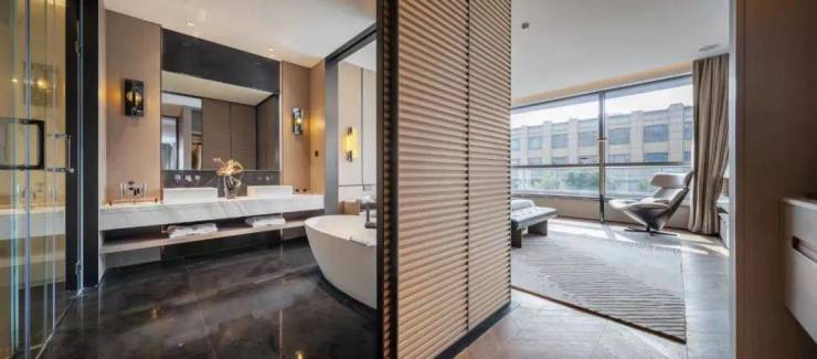 更为极致的是即将推出的A户型330方户型,只做了两个卧室,算下来,每170方就配了一个卧室。杭州在潮流端一直很洋气,这些年随着城市能级的提升,以及New Money的激增,投射到房子上,就是宽景平层走俏;投射到空间格局上,就是做大卫生间、衣帽间等私享型空。