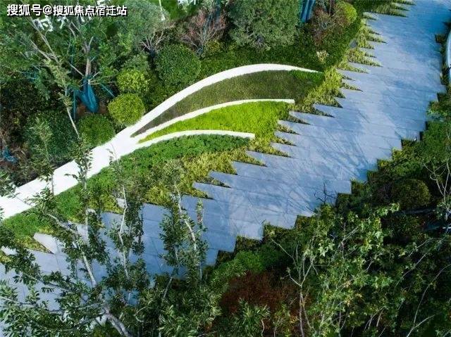 由柳叶锯齿状排列的芝麻灰花岗岩步道与地被交互,强化了道路与绿化之间的紧密结合;施工中,技术人员按图定制异形石材,通过精准放线,准确定位,拼铺时,注重步道的平整与对缝的整齐,有效确保步道的铺装效果。