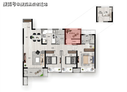 主卧采用套房设计,增加居住的私密性,南向卧室均有飘窗设计增加了后期的居住舒适度;