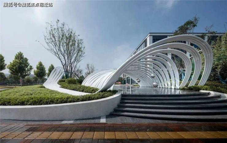 项目以现代简约风格及灰、白主调,运用多种弧形线条及灯光效果,进行一场人与时空的对话。该项目展示区园林景观工程由公司河南运营中心精心打造。