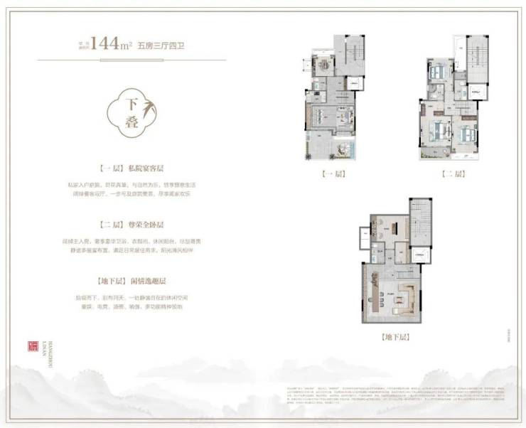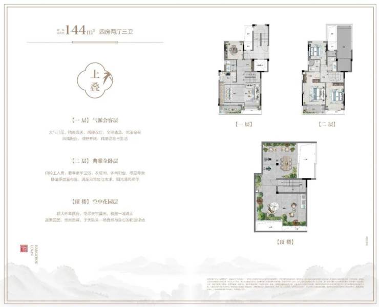 【主力户型】伴山叠院建筑面积约144㎡、城市合院建筑面积约187—195㎡