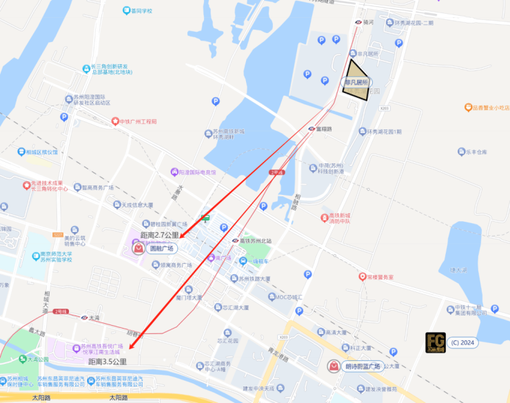 环秀湖花园本身是地铁2号线“骑河站”的地铁上盖项目,但非凡居所位于2号线骑河站和富翔路站之间,距离两站都是400米左右。