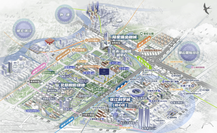 如果自驾出行的话,就比较方便了,项目临近罗山高架、中环路、高科西路等主干道,可快速直达前滩、陆家嘴、人民广场等核心区域,距离张江更是一路之遥。