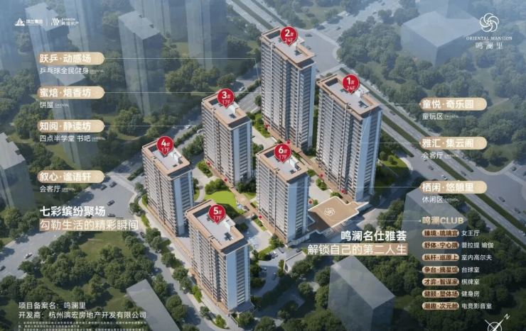 项目是周边首个采用四面铝板外立面的住宅,搭配大面积玻璃幕墙与香槟色金属线条;小区内部下沉式会所,规划约2000㎡的鸣澜club,内含健身房、影音室、室内高尔夫、咖啡吧等;所有楼幢均设计架空层,规划了儿童游乐、四点半学堂、健身区、老年康养区等主题空间。