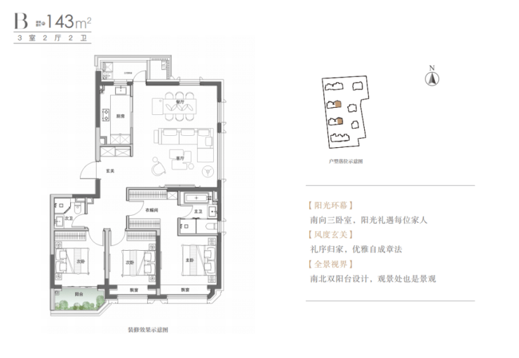 超配尺度:北阳台空间可作为家政空间使用,南向全明三卧室,每一位家庭成员都能实现阳光平权,通透舒适。